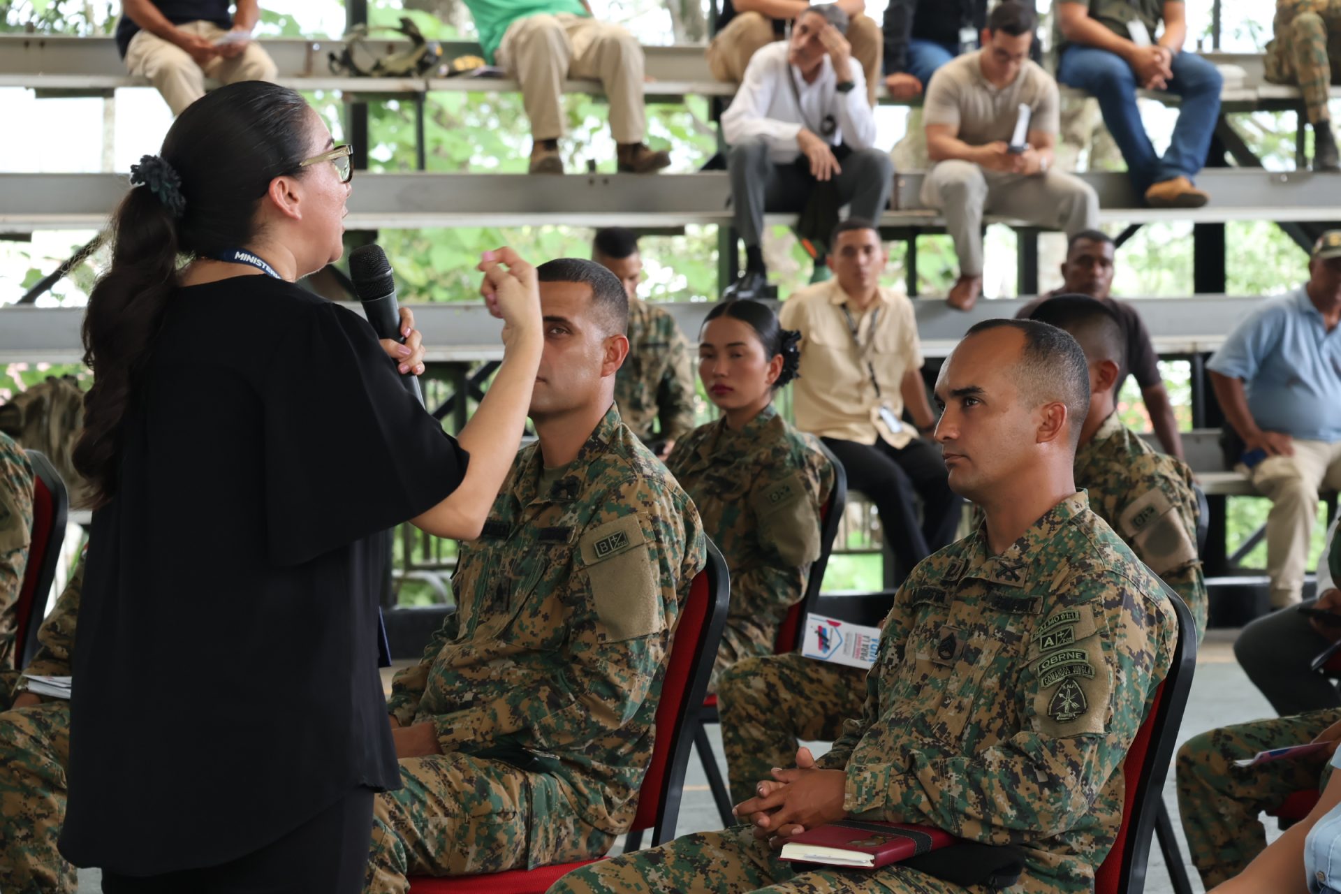 La actividad contó con la participación de 46 personas de manera presencial y 122 asistentes en modalidad virtual, un total de 168 participantes, lo cual refleja un alto nivel de interés y compromiso por parte de las unidades del SENAFRONT.